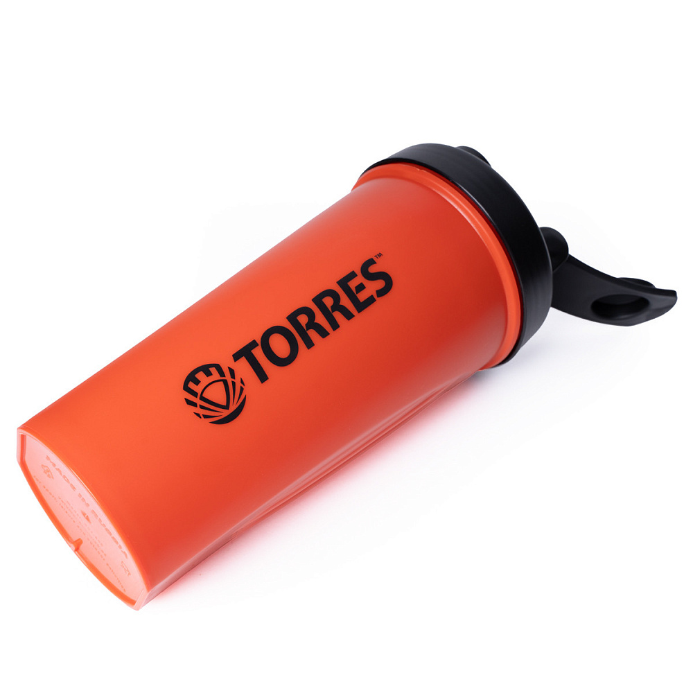 Шейкер спортивный TORRES. Объем 600 мл, гипоаллергенный жесткий пластик, безопасная герметичная крышка с защитным колпачком, для предотвращения загрязнения и протекания. Внутри металлический шарик для взбалтывания коктейля. Наличие шкалы позволяет с точностью отмерять порцию коктейля. Не предназначен для горячих жидкостей (выше 80°С) Упаковка - пластиковый пакет.