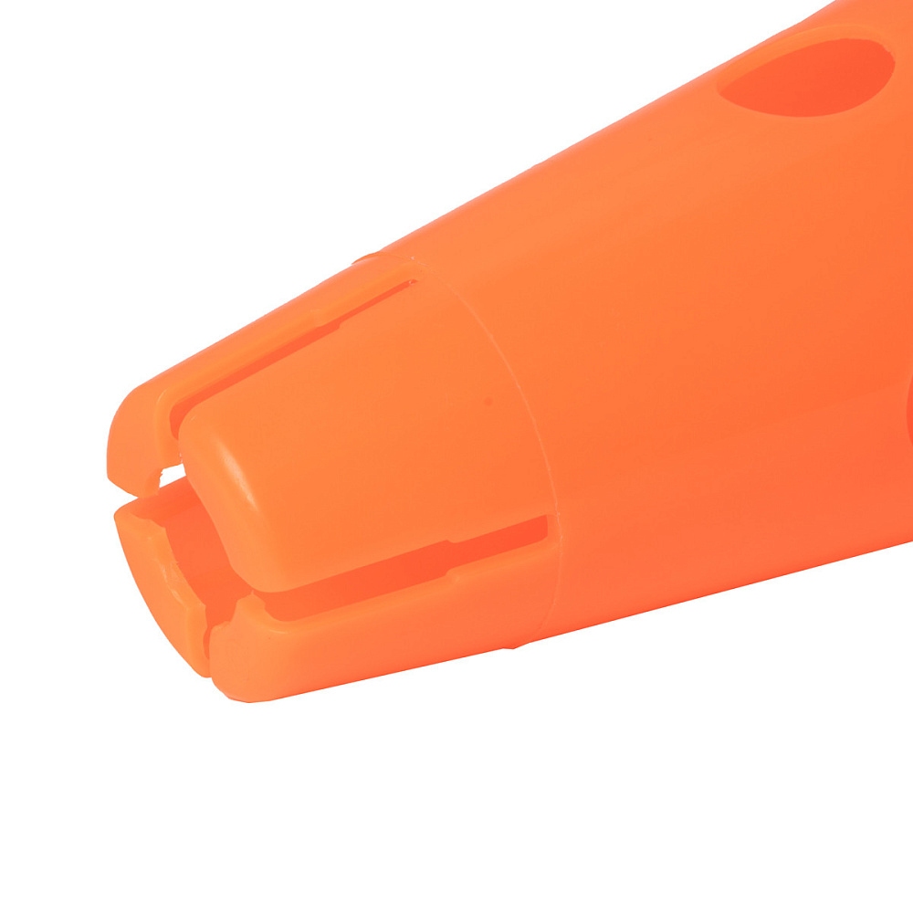 Конус тренировочный TORRES, с одним вертикальным и восемью боковыми отверстиями для штанги TORRES, пластик средней жесткости, оранжевого цвета. Диаметр отверстий 2,5 см Высота 38 см Размер основания 20 х 20 см Без индивидуальной упаковки