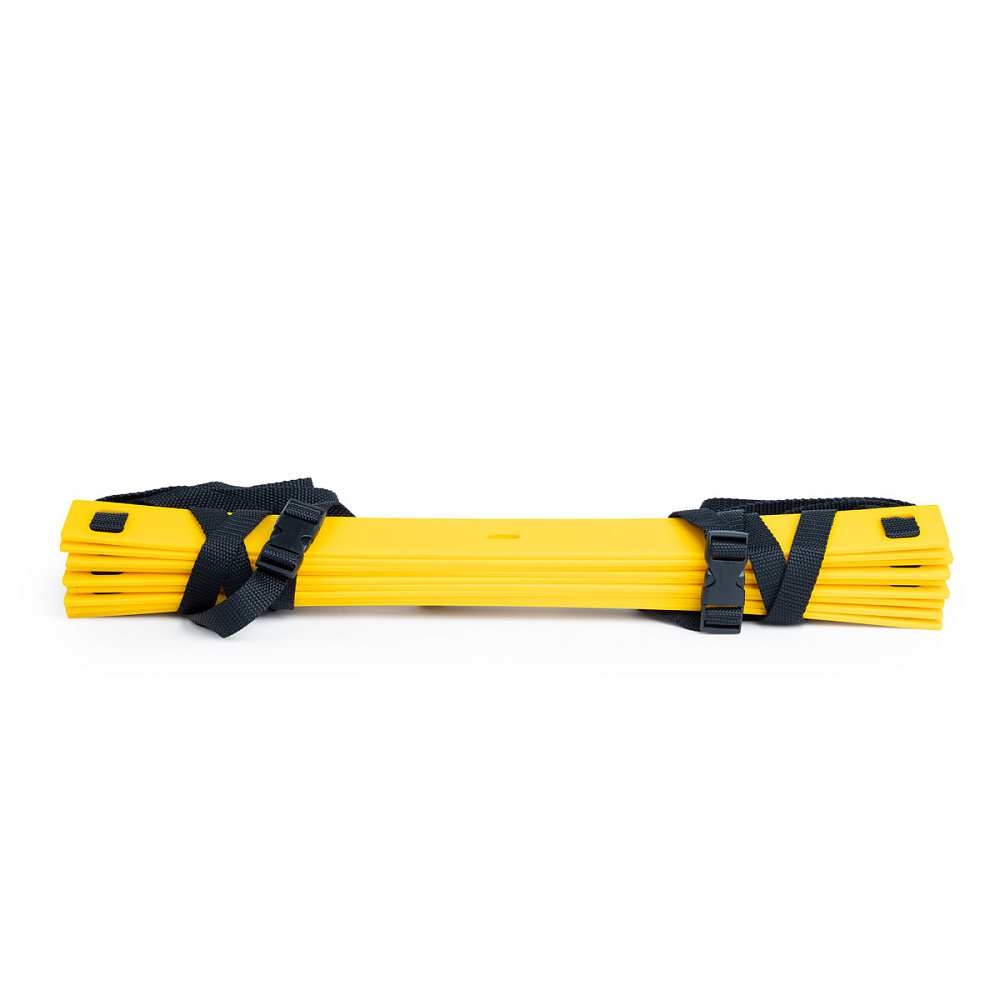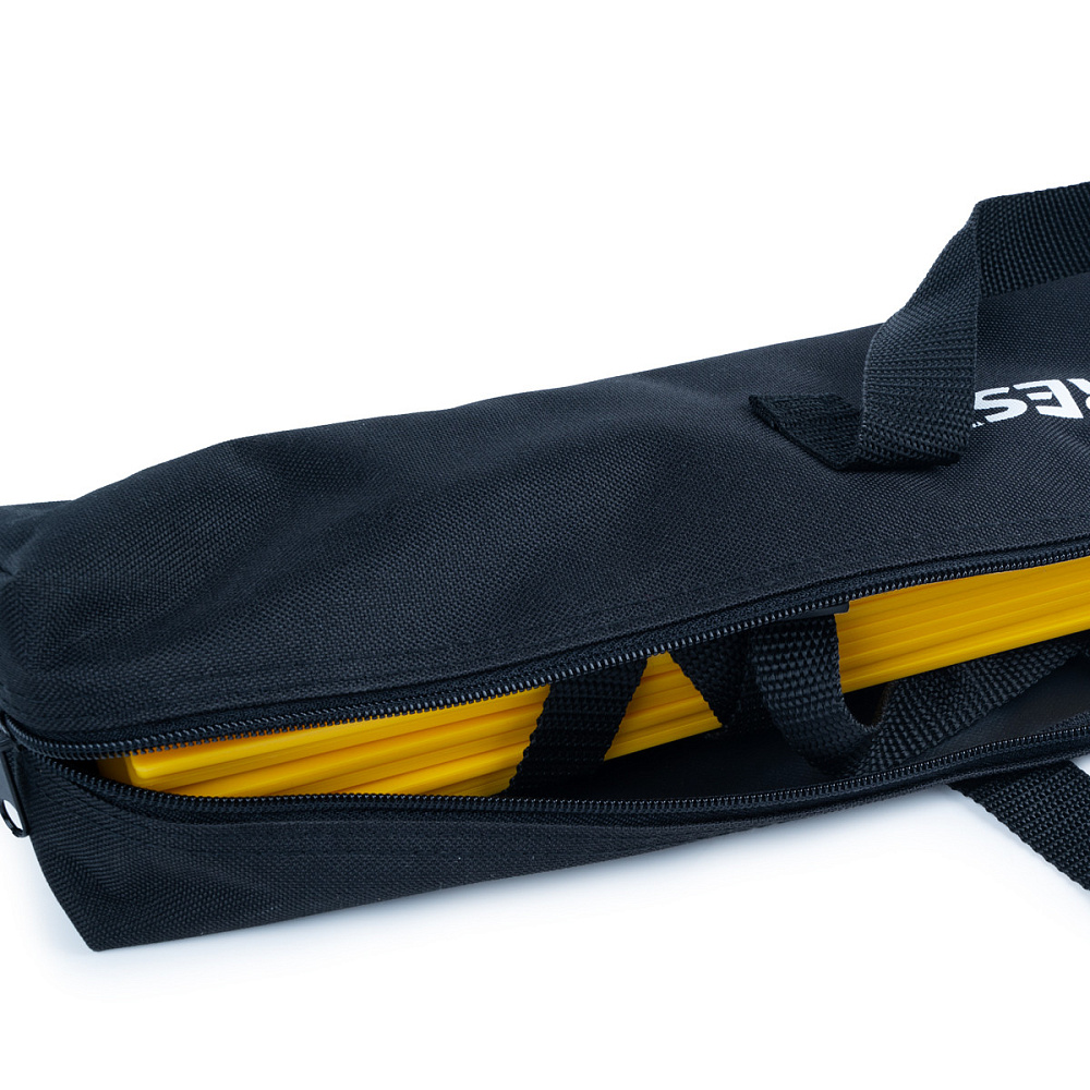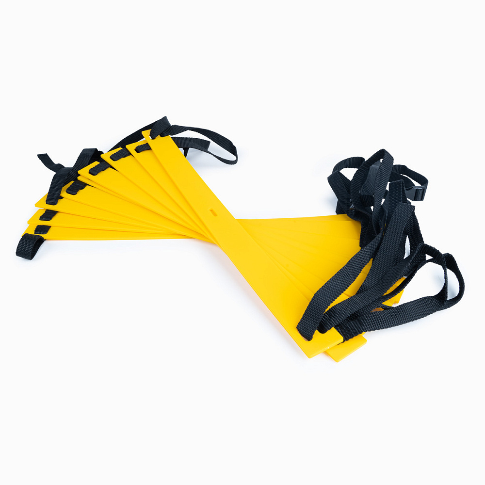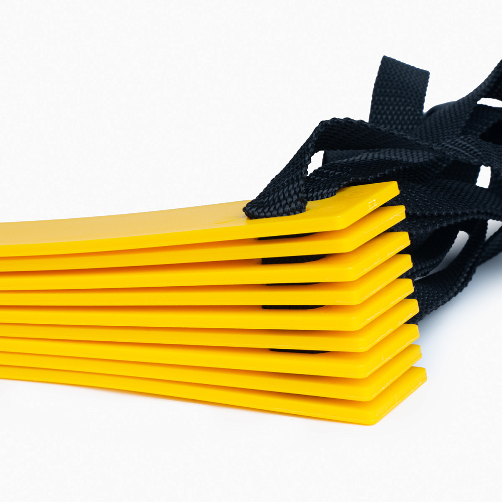 Лестница для тренировок. Длина 4 м, ширина 50 см. Перекладины (9 шт) из прочного пластика, ленты из полиэстера, регулируемое расстояние между перекладинами. На концах лент пластиковые карабины для прикрепления другой лестницы, в случае если необходимо обеспечить бОльшую длину лестницы. Поставляется в нейлоновой сумке для переноски.